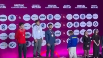Украинского борца сняли на видео, как он отвернулся во время гимна РФ