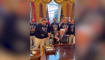 Трамп повесил на шею золотую медаль ОИ и отказался отдавать, это сняли на видео