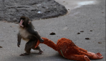 Брошенный матерью макак попал в новую семью благодаря плюшевой игрушке