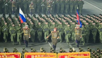 Российский триколор сняли на фото во время военного парада КНА в Пхеньяне
