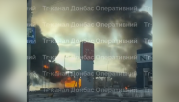 Полностью сгоревшую после атаки ВС РФ АЗС в Краматорске сняли на видео
