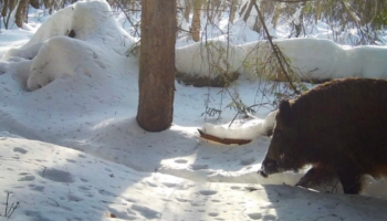 Фотоловушка в Окском заповеднике сняла лосей, кабанов и волка в метровых сугробах