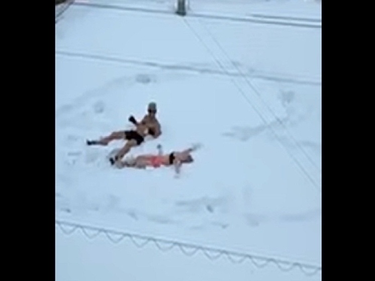 Судя по опубликованному видео, в микрорайоне Южный на крыше дома находились мужчина в плавках и женщина в купальнике. Они лежали на снегу и играли в снежки.