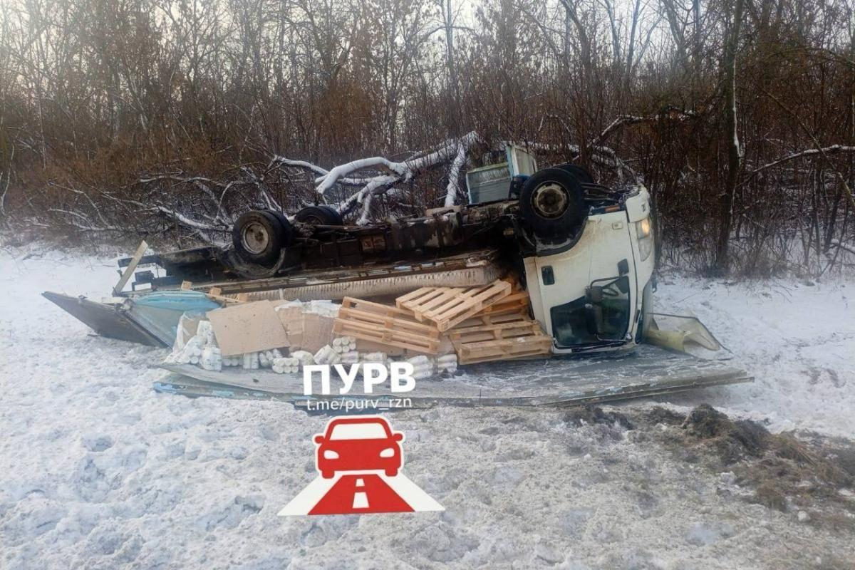 На трассе «М-5» в городе Рыбное Рязанской области произошло ДТП с участием грузового автомобиля. Об этом 28 декабря сообщил Telegram-канал «ПУВР».