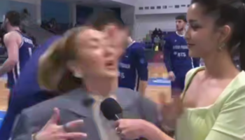 В Уфе сняли курьёзный эпизод с баскетболистом, сбившим двух девушек