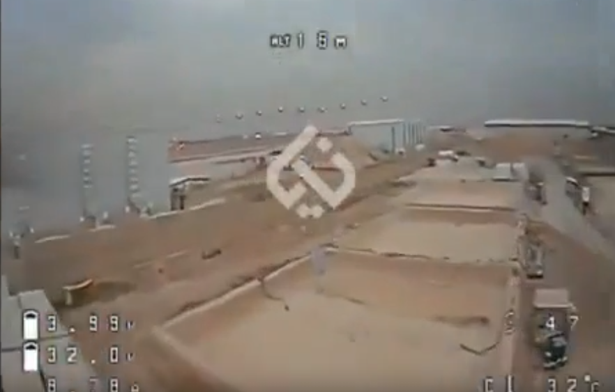 На видеозаписи видно, как дрон беспрепятственно появляется над территорией базы и начинает поиск цели. Коптер перемещается на высоте примерно от 12 до 25 метров, игнорируя небольшие объекты, в том числе автомобили и топливозаправщики. Судя по кадрам, оператор стремился нанести более ощутимый ущерб инфраструктуре объекта.