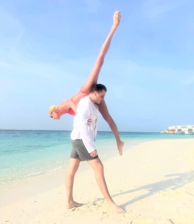 49-летняя балерина Анастасия Волочкова во время отдыха на Мальдивских островах устроила очередную фотосессию на пляже. Для эффектного кадра артистке помог её знакомый — профессиональный танцор Марчел Абаби, с которым она проводит отпуск.