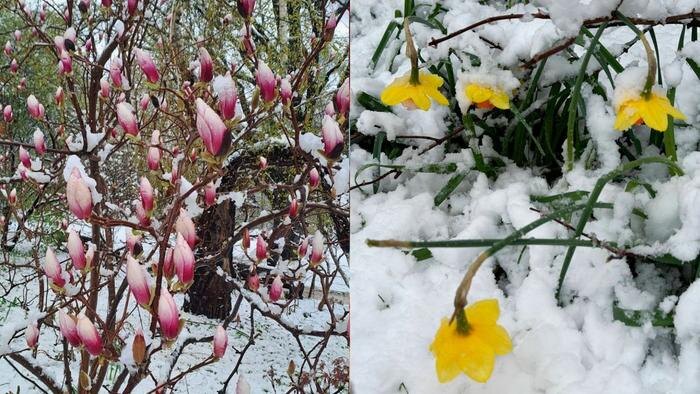 В Москве в конце апреля произошла резкая смена погодных условий, которая привела к необычным последствиям для городских парков и садов. В ботаническом саду МГУ «Аптекарский огород» цветущие растения оказались под снегом. Как сообщила пресс-служба сада, осадки накрыли распустившиеся сакуру и форзицию, что стало редким явлением для этого времени года.