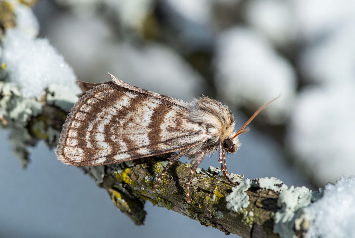 Речь идет о зимней пяденице — необычном виде бабочек, отличающемся особенностями жизненного цикла. Как пояснили лесопатологи, период активности этих насекомых приходится на ноябрь, когда устанавливаются заморозки и большинство других видов уже прекращают свою активность. Самки способны выдерживать понижение температуры до минус 9 градусов и не погибают при таких условиях.