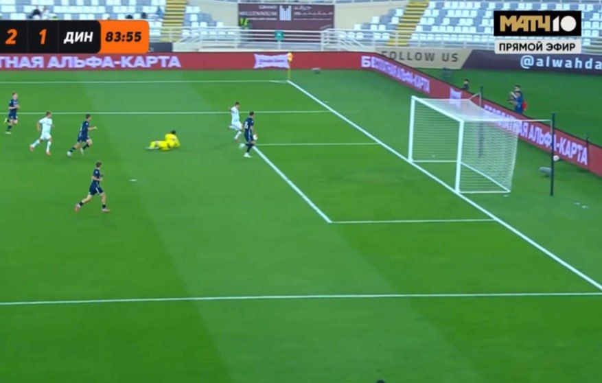 Нападающий «Зенита» Александр Соболев не сумел поразить пустые ворота в концовке матча Winline Зимнего Кубка РПЛ против московского «Динамо», который завершился победой петербургской команды со счетом 2:1. Эпизод произошел на 84-й минуте встречи и стал одним из самых заметных моментов второго тайма.