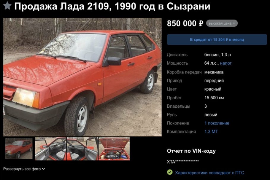 В Сызрани выставили на продажу редкий для рынка автомобиль — ВАЗ-2109 с пробегом всего 15 500 километров. Соответствующее объявление появилось в открытом доступе и сразу привлекло внимание автолюбителей и коллекционеров. Продавец утверждает, что пробег у машины родной, а сам автомобиль сохранился в заводском состоянии. Год выпуска — 1990-й.